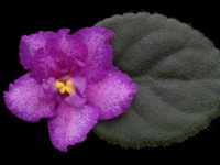 Double white stars with a light blue mottling throughout. Light green foliage shapes nicely and is serrated. A good bloomer and an excellent show plant! Semiminiature.