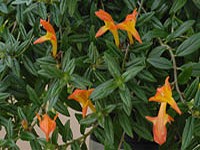 Outstanding, large orange flowers are produced all year on this vigorous, trailing plant with small, bright green leaves.